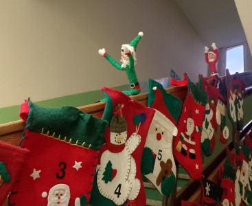 Kolejny dzień, a tu kolejna niespodzianka! Nasze dwa Elfy urządziły sobie świetną zabawę! Poręcz zamieniła się w ślizgawkę! Pogoda brzydka, wszystko na podwórku zimne i mokre, więc nasze skrzaty poradziły sobie w inny sposób.