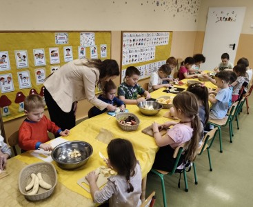 Na zakończenie przedszkolaki samodzielnie kroiły owoce i przygotowały pyszną, kolorową sałatkę owocową. Następnego dnia odbyło się w przedszkolu zdrowe śniadanie. Dzieci samodzielnie przygotowywały pyszne i kolorowe kanapki z wykorzystaniem świeżych warzyw. To był kolejny dzień pełen smaków, radości i nauki poprzez działanie!