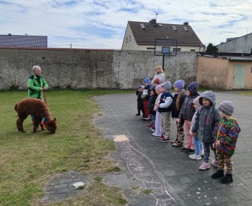Dzisiaj po raz kolejny spotkaliśmy się z alpakami z hodowli „Alpaki Helenki”. Poznaliśmy nowego członka alpakowej rodziny, półtorarocznego Kubusia, który odwiedził nas w towarzystwie starszego kolegi Toffika. Chociaż Kubuś niezbyt chętnie dawał się karmić marchewką, był bardzo chętny do spacerowania po naszym podwórku. No i oczywiście nie zabrakło całusów, przytulania i głaskania naszych milusińskich czworonożnych przyjaciół.