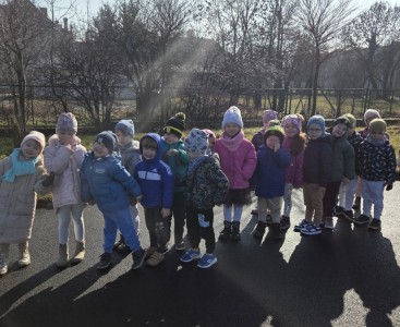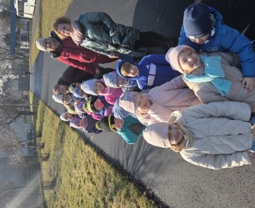 Dzieci z grupy smerfow wybrały sie na poszukiwanie pierwszy oznak wiosny.