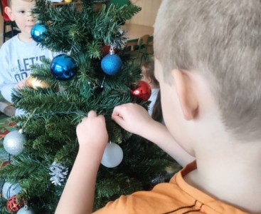 To już nasza przedszkolna tradycja – nie może zabraknąć wspólnego ubierania choinki. W czwartek 04.12.2025 r. w sali panowała świąteczna atmosfera, a dzieci z ogromną radością wieszały bombki. Było dużo uśmiechu, ekscytacji i wspólnego tworzenia magii świąt.