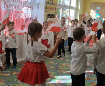 Na zakończenie, w podniosłej atmosferze, wszystkie dzieci wraz z całą kadrą odśpiewały „Mazurka Dąbrowskiego”, oddając w ten sposób hołd Ojczyźnie i upamiętniając ten szczególny dzień.
