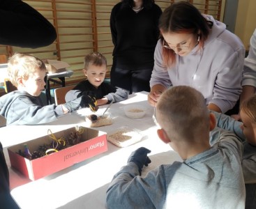 W piątek 03.10.2025 r. Puchatki wzięły udział w wyjątkowych warsztatach pod chmurką. Czekało na nie wiele kreatywnych i angażujących aktywności! Mali uczestnicy tworzyli naturalne szyszki dla ptaków, przygotowali piękne jesienne prace plastyczne z liści, a także sadząc wrzosy uczyli się, jak dbać o rośliny. Nie zabrakło też zdrowej przekąski – dzieci samodzielnie przygotowały kolorowe, zdrowe kanapki. Na zakończenie miało miejsce zwiedzanie szkoły, które wzbudziło wiele emocji i zaciekawienia, zwłaszcza wśród najmłodszych. To był wyjątkowy dzień.