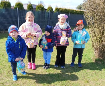 Tradycyjnie co roku dzieci z niecierpliwością wyczekują niespodzianek które zostawił dla nich wielkanocny zajączek. Tak było i tym razem, poszukiwania w ogrodzie przedszkolnym zakończyły się sukcesem i wielką radością.