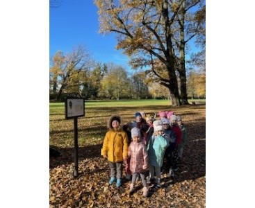 Grupa "Żabek" wybrała się do miejskiego parku, aby poznać jego historię i ciekawostki o nim.