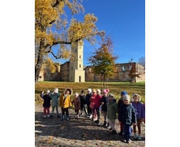 Dzieci szukały tabliczek z nazwami drzew, zbierały kolorowe, jesienne liście, poznały historię zamku Renardów.